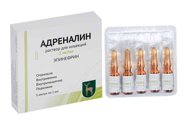 Адреналин р-р д/ин 0.1% 1 мл амп уп конт яч(фольга)/пач карт x5
