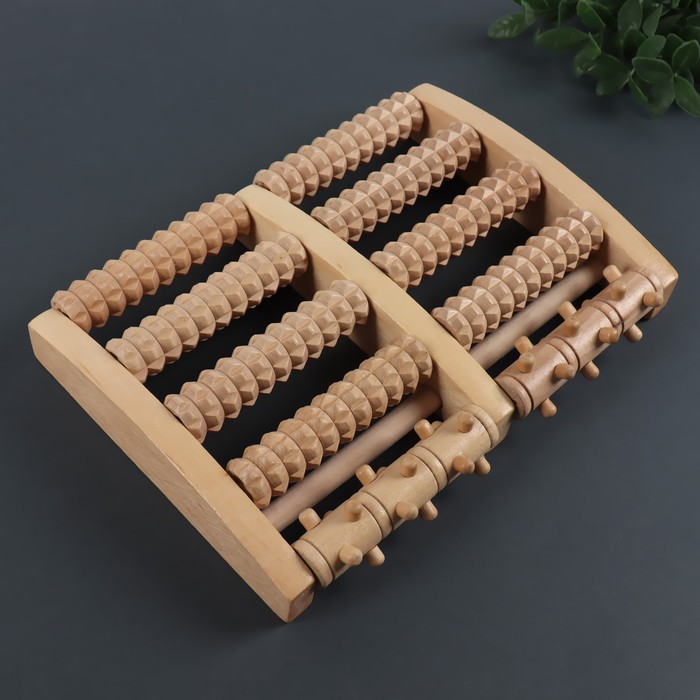 Массажер ONLITOP Барабаны 5 рядов с шипами 27×19×5 см деревянный x1