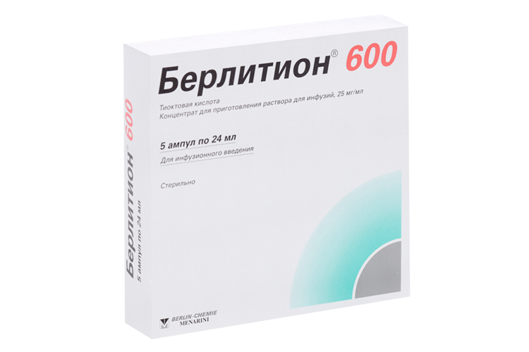 Берлитион 600 конц д/р-ра д/инф 25 мг/мл 24 мл пласт/поддон/пач карт x5