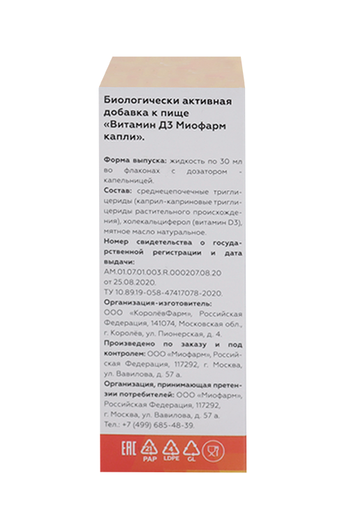 Организация, принимающая претензии потребителей: ООО «Миофарм», Российская Федерация, 117292 г. Москва, ул. Вавилова, д. 57 ,а. , Тел.: +7(499) 685-48-39.