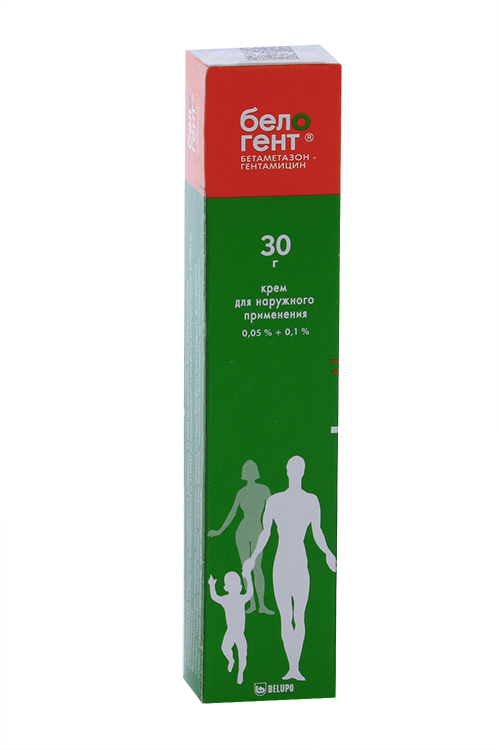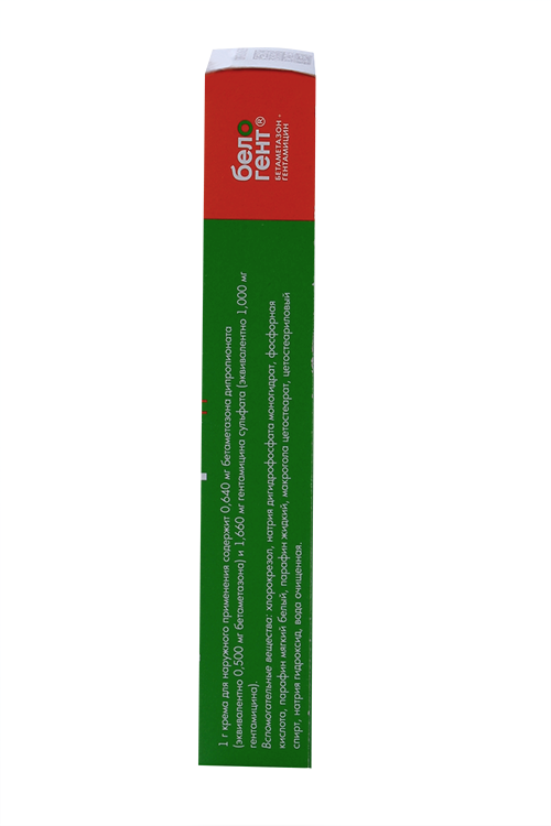 действующие вещества: бетаметазона дипропионат 0,640 ,мг (эквивалентно 0,500 ,мг бетаметазона) и гентамицина сульфат 1,660 мг (эквивалентно 1,000 ,мг гентамицина),