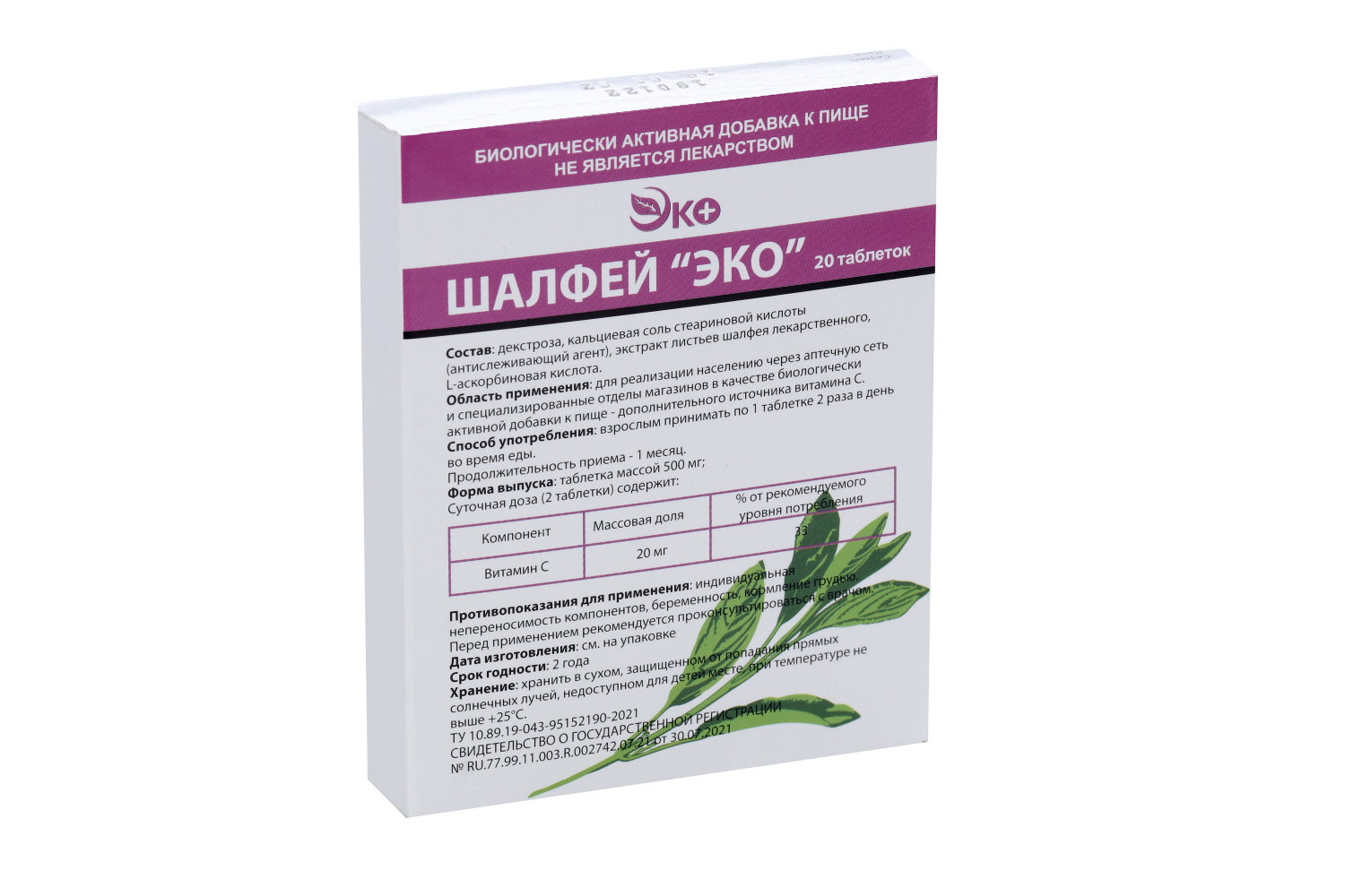 Состав: декстроза, кальциевая соль стеариновой кислоты (антислеживающий агент), экстракт листьев шалфея лекарственного, L-аскорбиновая кислота.