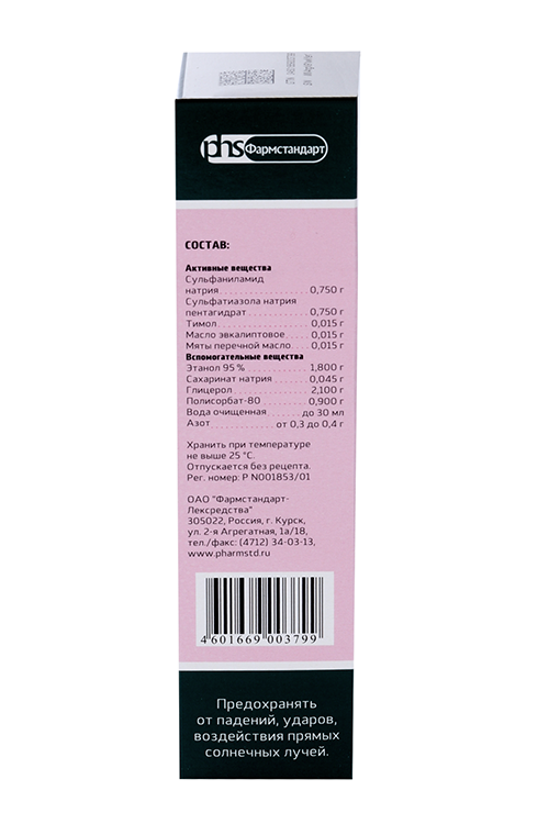 Аэрозоль для местного применения в виде прозрачной жидкости от светло-желтого до темно-желтого цвета, при выходе из баллона образует струю с характерным запахом тимола и ментола.