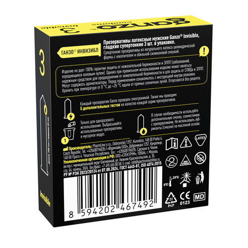 Презервативы Ганзо Инвизибл гладкие супертонкие x3