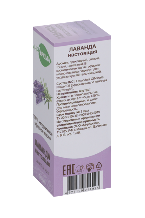 Масло лаванды обладает мягким, свежим и цветочным ароматом, который помогает расслабиться, снять стресс и улучшить настроение. Благодаря своим успокаивающим и антисептическим свойствам, эфирное масло лаванды эффективно борется с нервным напряжением, бессонницей и головными болями. Его используют для ароматерапии — капают в диффузор или добавляют в воду для ванны, чтобы создать уютную и расслабляющую атмосферу дома или в офисе.