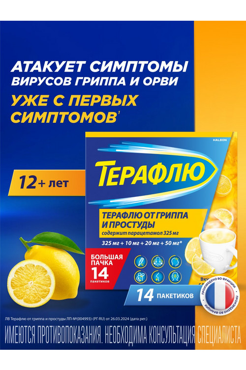 ТераФлю от гриппа и простуды пор д/приг р-ра вн лимон 325 мг+10 мг+20 мг+50 мг x14