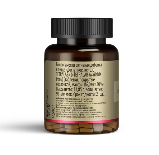 Железо доступное бисглицината-хелат Тетралаб табл п о x90