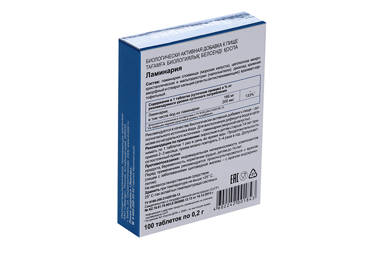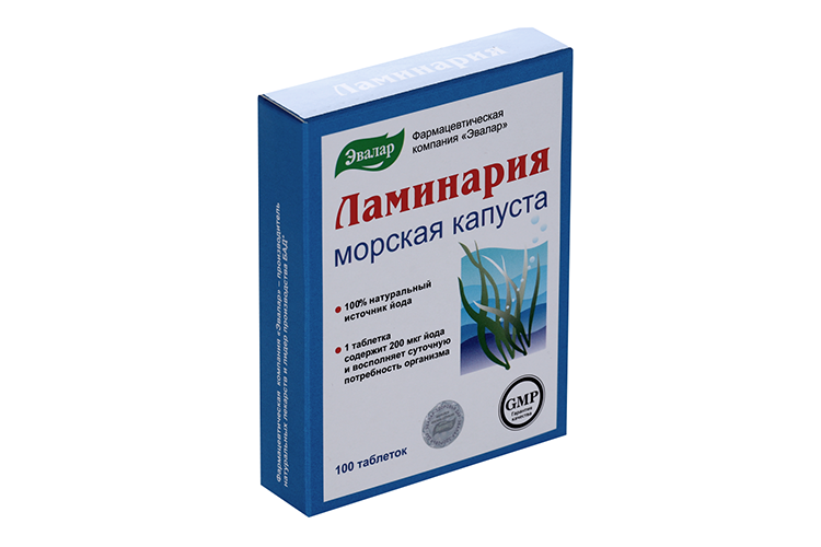 1 таблетка содержит 100 % ламинарии (морской капусты).