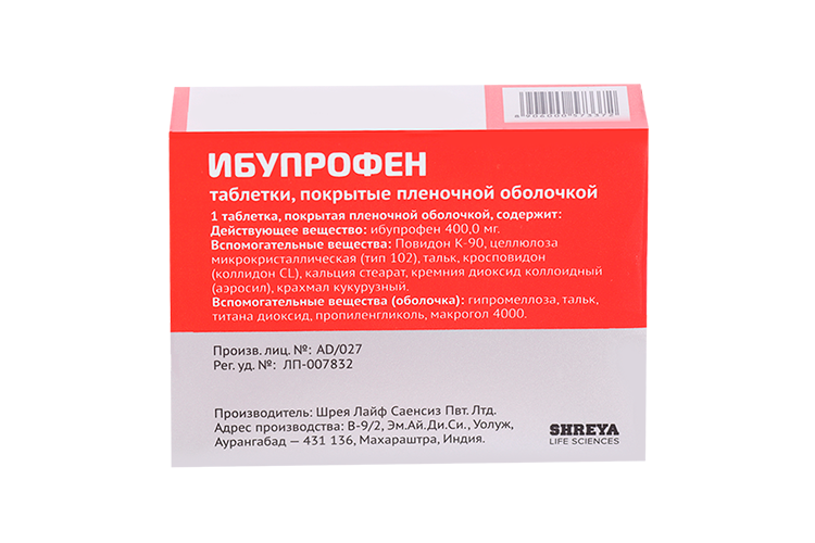 | ибупрофен | 400 мг |
