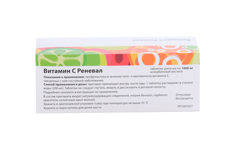 Состав: , Действующее вещество: аскорбиновая кислота – 1000,00 мг, Вспомогательные вещества: лимонная кислота безводная, натрия гидрокарбонат, сорбитол, натрия карбонат безводный, макрогол 6000, натрия бензоат, ароматизатор лимонный, повидон К30, ароматизатор апельсиновый, натрия сахаринат, краситель желтый хинолиновый, краситель желтый "солнечный закат".