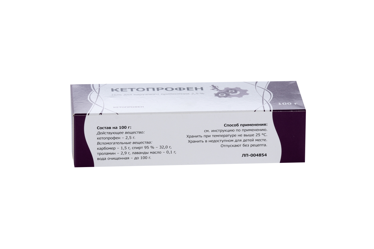 Кетопрофен всасывается очень медленно и практически не кумулирует в организме. Биодоступность составляет 5%. Кетопрофен проникает в подкожную клетчатку, связки и мышцы, синовиальную жидкость и достигает там терапевтических концентраций. Концентрация препарата в плазме крови крайне низкая. Кетопрофен метаболизируется в печени с образованием конъюгатов, которые в основном выводятся с мочой. Кетопрофен характеризуется медленным выведением с мочой.