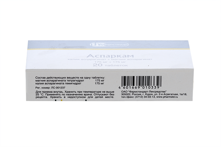 Международное название: Калия аспарагинат+Магния аспарагинат&, (Aspartic acid, potassium and magnesium salt)