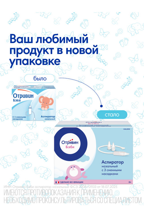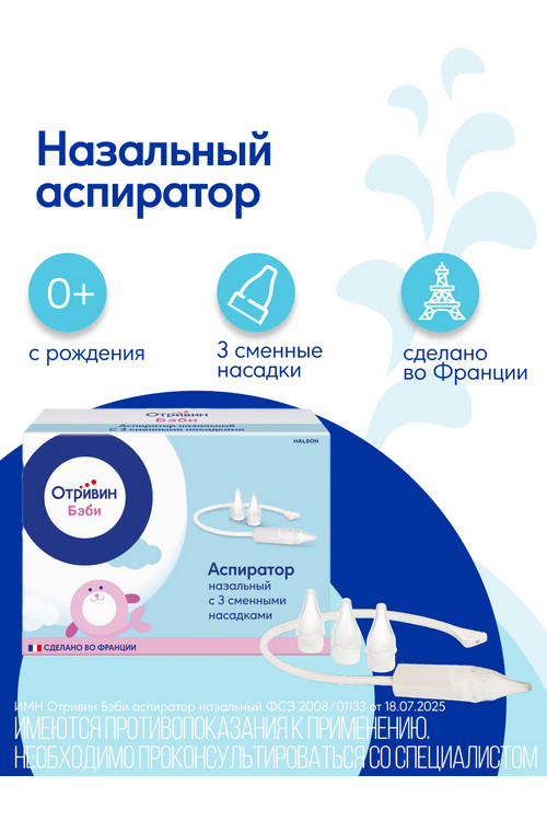Описание и инструкция к "Отривин Бэби аспиратор назальный + 3 смен насадки"