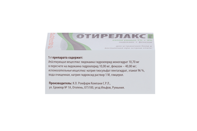 Продолжительность применения Отирелакса не более 10 дней, после чего следует пересмотреть назначенное лечение.