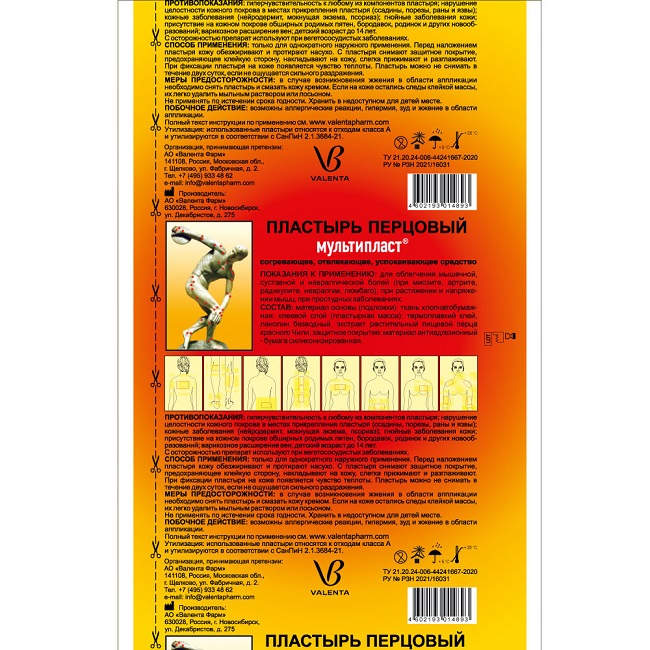 Перцовый пластырь упаковывают в индивидуальную упаковку- контурную безъячейковую упаковку по 1 штуке или в виде ленты от 2 до 200 штук.