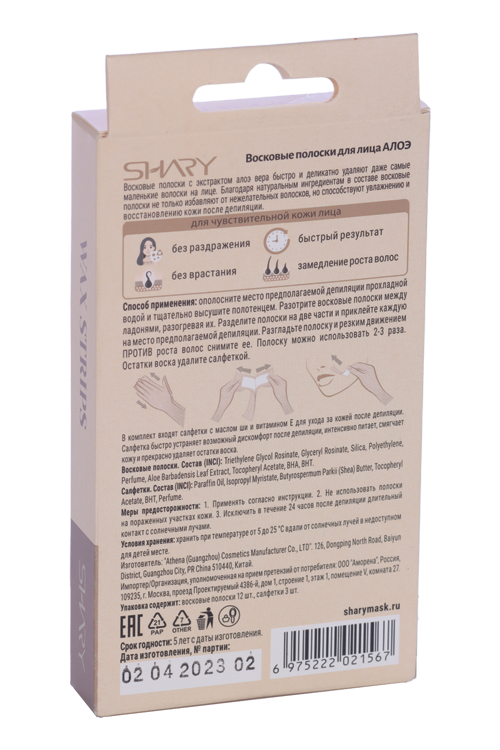 Восковые полоски SHARY Алоэ д/чувствительной кожи лица x12 (6975222021567)