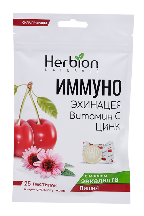 Иммуно Эхинацея Herbion с маслом эвкалипта Вишня пастилки x25
