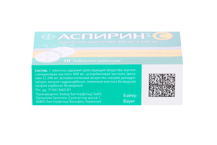 аскорбиновая кислота 240 мг, ацетилсалициловая кислота 400 мг