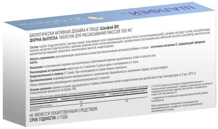 Рекомендации по применению: взрослым, по 2 таблетки 3 раза в день с интервалом в 2 часа.