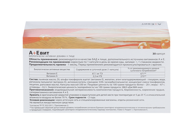 Приём А+Е вит капсул способствует коррекции состояний, связанных с повышенной потребностью в этих витаминах или их недостаточным поступлением с пищей. Это актуально в периоды сезонного ослабления защитных сил организма, при несбалансированном рационе, воздействии неблагоприятных экологических условий или повышенных физических и эмоциональных нагрузках. Капсульная форма обеспечивает оптимальную биодоступность жирорастворимых витаминов и их защиту от окисления до момента усвоения.