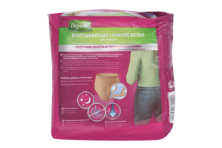 Подгузники-трусы Depend разработаны для женщин с учетом строения их тела. Бывают моменты, когда женщинам особенно хочется чувствовать себя защищенной, как раз для этого и были созданы трусы с быстро впитывающими каналами и элементами, нейтрализующими запах.