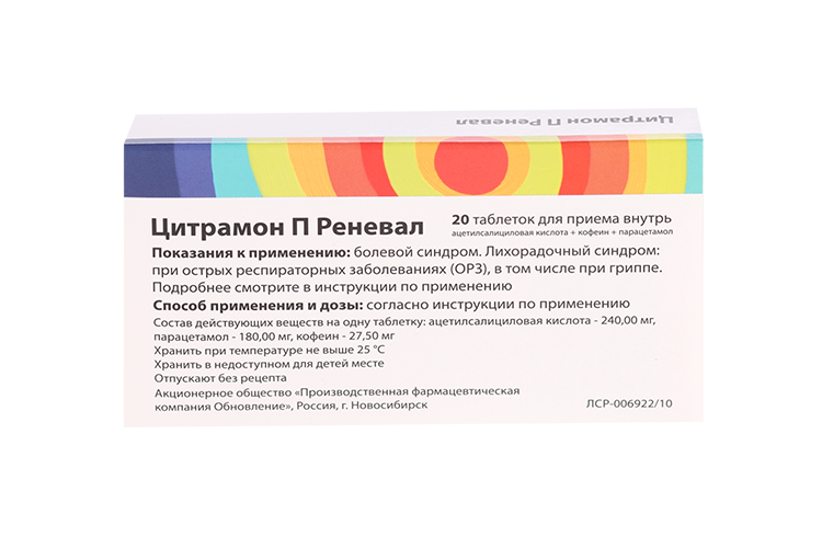 Показания активных веществ препарата Цитрамон П Реневал